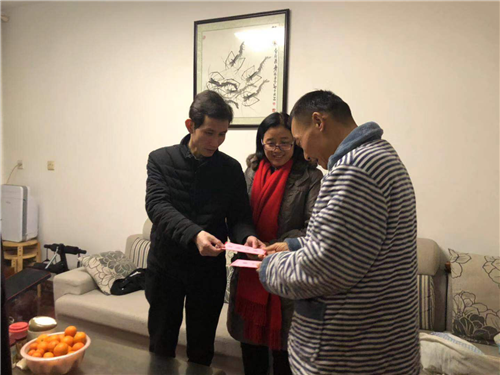 李云华、袁良丽、刘晓丹一行先后来到困难职工李素飞、刘益伍、刘耀武、李庆伟、胡彩旭家中,为他们送上了慰问金和春节问候,并与困难职工及家属亲切交谈,询问他们身体、生活、工作情况。