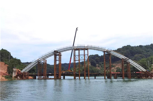 6月30日,公司下属桥梁项目建设分公司建设的酒仙湖醉婆桥工程的第一个重大节点完成---钢拱肋顺利合拢。