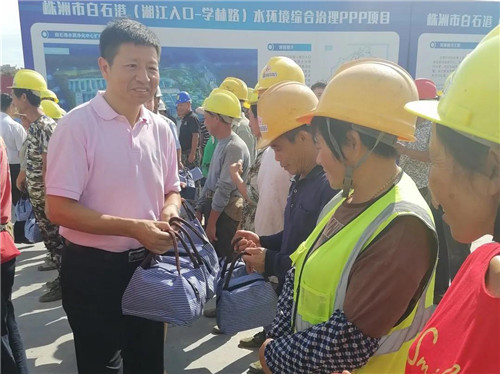 王洪斌将一包包清凉包送到工人们手中,向奋战一线的劳动者表示感谢和慰问,提醒大家天气炎热要注意防暑降温、劳逸结合。在项目现场,王洪斌还重点询问了项目建设进展,并仔细查看了安全生产情况,要求我公司坚持以人为本,在保障项目建设质量和进度的同时,合理安排工人轮班和作息时间,防止生产安全事故的发生。