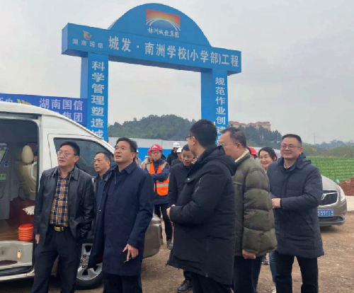 在国信建设负责施工建设的南洲学校(小学部)、环保型路面新材料生产基地项目现场,谭跃飞一行详细询问了项目建设情况、投融资情况和后期运营计划,并肯定了各个项目建设的高标准、高要求。他表示,要加快项目建设,确保各项任务圆满完成,学校能及时交付,基地能早日投产;要尽快完善环保站运营公司的管理架构,实现投产既运营,早日成为国信建设的营收增长极;要加大环保站的研发投入,做到技术先进并持续领跑株洲市乃至中南地区的沥青混合料产业。