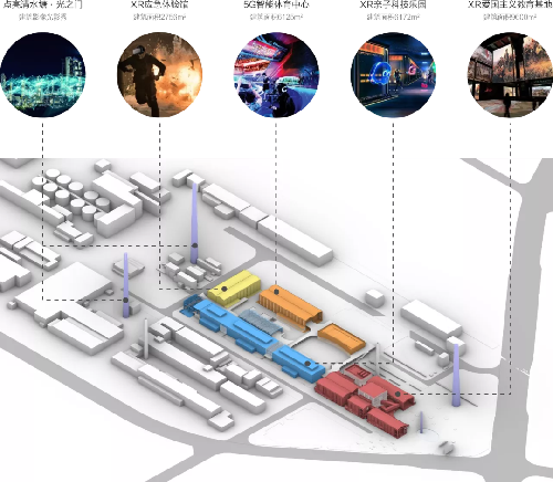 本项目总占地面积104.85亩,总建筑面积 27000m2,项目总投资99968万元。项目建设内容将以“4+1”的主要业态规划思路展开:其中“4”以 XR 爱国主义教育基地、XR 亲子科技乐园、5G智能体育中心、XR 应急体验馆四个主要场馆为体验核心;“1”则将以原亚洲最高133 米烟囱为主体打造大型光影文化主题科技秀。