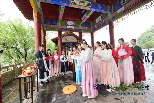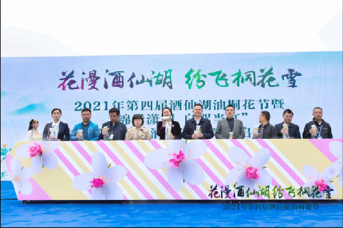 开幕式结束后,景区内祭桐花花神仪式、女子十二乐坊表演、天空之境芳华舞蹈等特色演出陆续上演,伴随着唯美的古风古韵,一场与花海的盛大约会,再次在风景秀丽的酒仙湖畔拉开序幕。