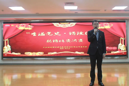 为进一步落实习近平总书记在党史学习教育动员大会上的讲话精神,迎接中国共产党百年华诞,以讴歌党的光荣历史和伟大业绩为主线,以建设“先锋行动”特色党建品牌为抓手,4月25日下午,公司在501会议室举办“重温党史、诵读经典”朗诵比赛决赛,公司领导班子、全体党员、中层干部、团员青年共计120余人参加。公司领导班子成员担任评委组。