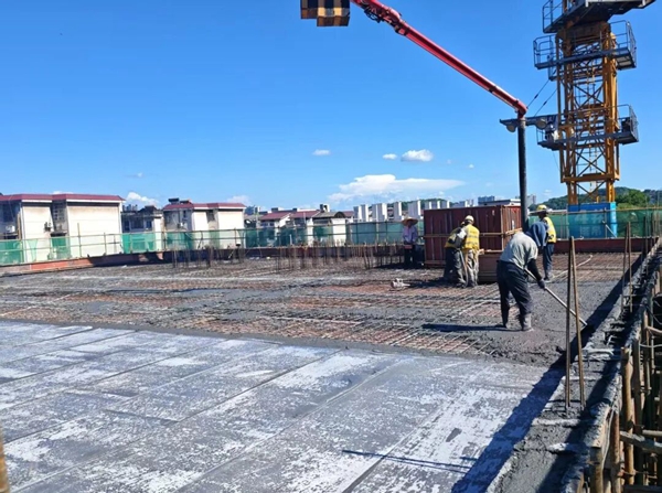 7月2日,伴随着最后一方混凝土浇筑完成,由湖南国信建设集团股份有限公司承建的田心中学改扩建项目4#栋主体结构正式封顶,标志着这一民生工程取得阶段性胜利。项目指挥部、校方代表及参建单位共同见证了这一重要时刻。