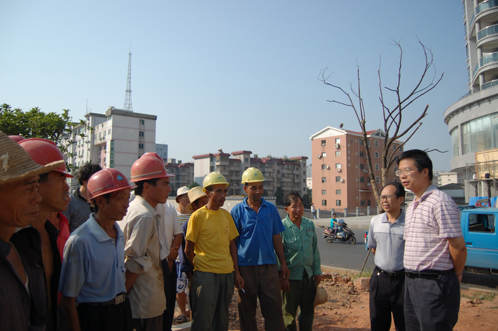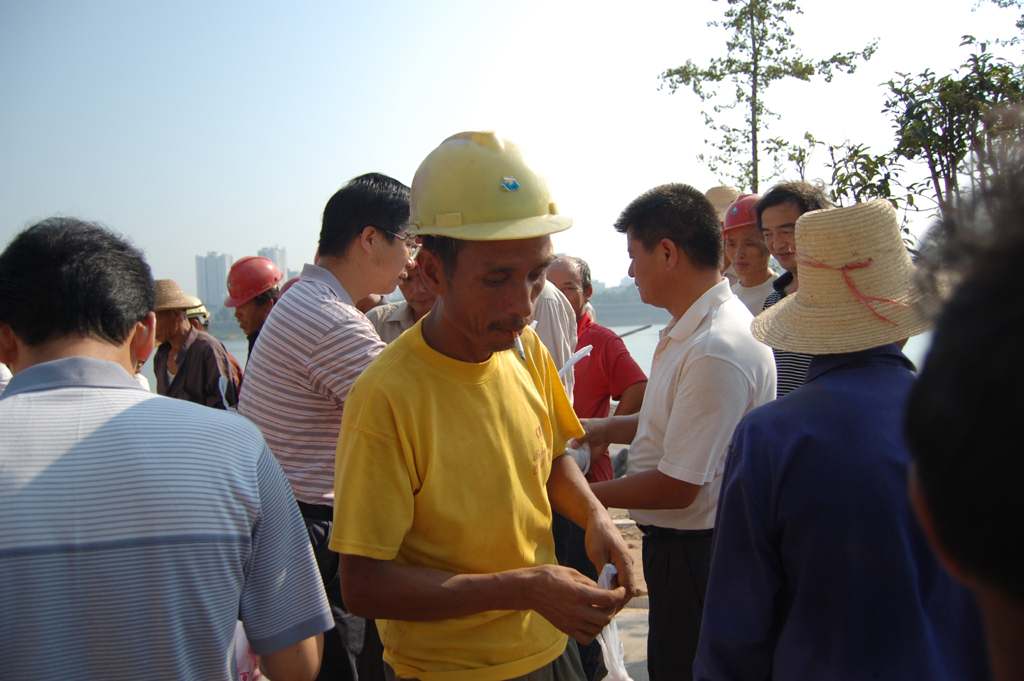 8月4日上午,省总工会副主席周乐红,市人大常委会党组副书记、市总工会主席乐永明,市人大常委会副主任杨宋虎、副市长肖文伟、市政协副主席贺夏盛等领导,前往我公司湘江风光带建设工地,给一线工作者送去防暑降温物品。