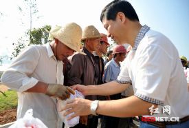 周师傅是湘江风光带建设工地上的一名工人,来工地已经3个多月,开始白皙的皮肤已经变成了现在的古铜色。因为家里比较贫困,他很少给自己买东西,更不用提配备防暑降温的物品了。眼看温度越来越高,“我本来准备挺一挺就过去算了,没想到却收到了这样一份清凉礼物,好高兴的。”