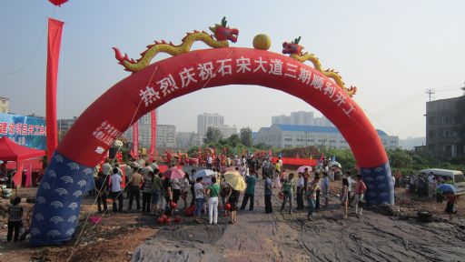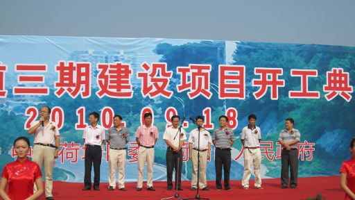 2010年9月18日上午,石宋大道鼓乐喧天,一派喜庆气象,石宋大道三期建设项目开工典礼在这里隆重举行。株洲市政府副秘书长刘方、荷塘区区长周晓理、常务副区长周小毛、国投公司监事会主席沈建斌,以及财政局、建设局、规划局等单位的领导参加了开工典礼。