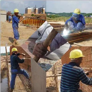 烈日曝晒下,工人们以顽强的毅力严谨作业、一丝不苟。钢筋焊接、钢筋绑扎...,每个施工环节和工作细节都高度重视。焊接的火花比烈日更