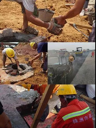 息,高速运转,呈现出一派热火朝天的施工场景。175度高温的沥青拌合料散发着特有的气味,工人们以专业化地技术将它均匀地摊铺在每一寸地