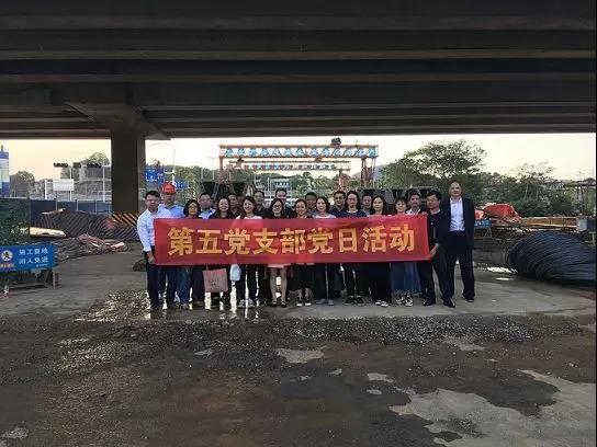 为深入推动党建工作与生产经营相结合,增强党员干部爱岗敬业的工作热情,10月12日下午,公司第五党支部在联点领导邓勇及书记邱爱青的带领下,一起来到桥梁项目部负责施工的迎新路与东环线匝道立交桥项目参观学习。