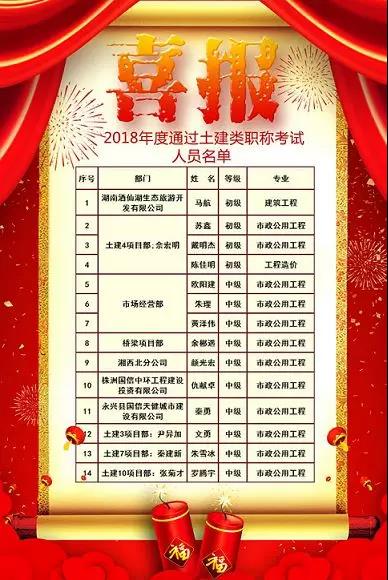 12月19日,让大家翘首以待的2018年度土建类初中级职称考试成绩在湖南建设人力资源网公布,经核实,我公司硕果累累,通过率高达51%。让我们一起热烈祝贺公司以下人员顺利通过土建类职称考试。