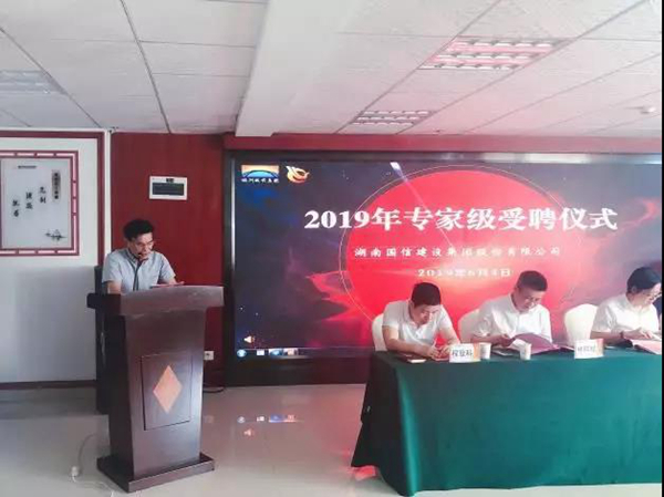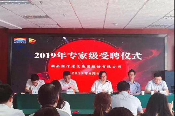 随着旭日的冉冉升起,专家受聘仪式在公司宣传片中拉开序幕。仪式的第一个环节是专家受聘,首先,凌香元解读了湘国信发【2018】38号《专家级管理办法(试行)》文件,向在座参会人员详细解析了公司专家的选聘程序、申报条件、专家的工作目标、专家的考核与薪酬以及专家的解聘等内容;林辉斌宣读首批受聘专家名单;在隆重的音乐声和热烈的掌声中,凌香元代表公司党委为此次受聘的5位专家颁发了聘书。随后,余健宣读初选结对人员名单(专家5名、结对学员34名)。