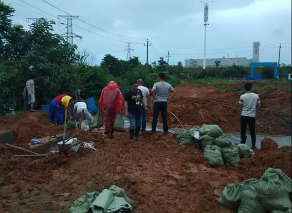 在大家两个小时的奋战下,水位明显下降,围墙也完成加固处理,险情得以控制。在即将来临的暴雨面前,浑身上下沾满泥土的他们虽然显得有些狼狈,但他们不畏艰险的干劲值得点赞。