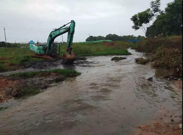 潘德智负责组织协调,邓方园带领民工装土袋、砍树桩;杨星带领挖机扩宽、疏通渠道;仇献卓带领材料员胡建国提供后勤保障。