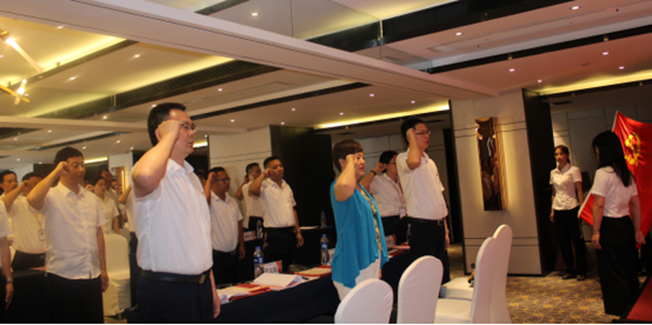 接下来由党委副书记、总经理吴立新宣读预备党员转正批复、接收预备党员批复,并由党委副书记、纪委书记凌香元领誓,新发展党员面对党旗进行了庄严宣誓,全体党员重温了入党誓词,表明自己将坚定立场,斗志昂扬,不忘初心,奋勇向前,为共产主义事业奋斗终身。