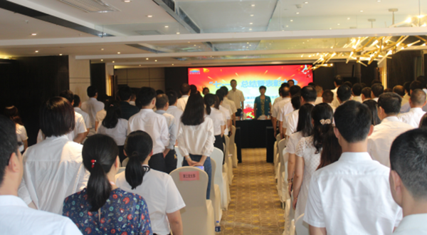 大会在雄壮的国歌声中拉开了帷幕,党委书记、董事长刘晓丹作“七一”总结讲话,他在讲话中首先代表公司党委向奋战在各条战线上的党务工作者、广大共产党员致以节日的问候和衷心的感谢。