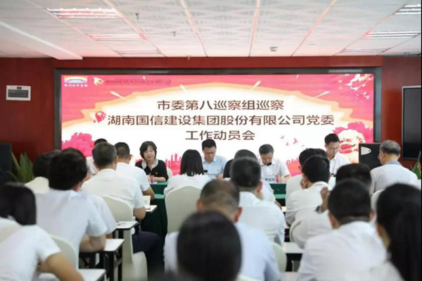 根据市委关于巡察工作的统一部署,2019年9月6日下午,市委第八巡察组巡察湖南国信建设集团股份有限公司党委工作动员会召开。会前,市委巡察工作领导小组成员、市委巡察办主任蒋羽翔主持召开与湖南国信建设集团股份有限公司党委书记、董事长刘晓丹的见面沟通会。会上,市委第八巡察组组长唐耀辉就此次巡察工作进行了安排部署,对工作重点、工作方式和举报线索等进行了详细说明。蒋羽翔对配合做好巡察工作提出要求。公司党委书记、董事长刘晓丹主持动员会并作表态讲话。