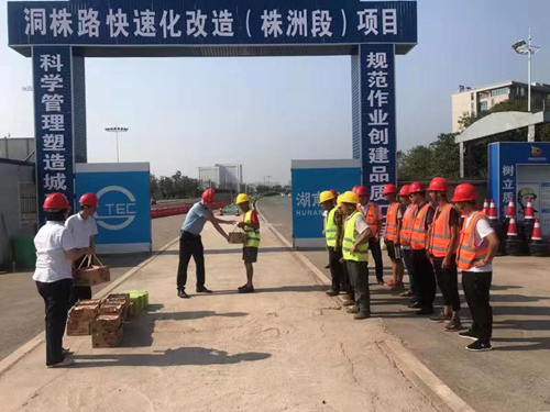 上午9点半,刘晓丹与党委副书记、纪委书记凌香元,工会主席、监事会主席余健带领相关部门负责人赶到了洞株路项目现场,为一线工作人员和民工班组送去月饼等物资。作为省市重要、重大的项目,公司高度重视,各项工作有序开展,施工人员坚守阵地,紧盯任务目标,在节假日也丝毫不放松。