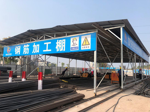移动式钢筋加工棚不仅可以遮风挡雨,在操作上也十分便捷,作业人员通过底部安装的滑轮,灵活移动工作区域,改善作业环境。